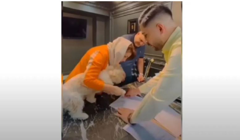 Në videon që qarkullon në mediat sociale shihet ‘Chester’, një qen Shih Tzu dhe një çift iranian duke bërë qenin e tyre të nënshkruajë me putrën e tij, kontratën që e bënte atë pronarin e apartamentit.