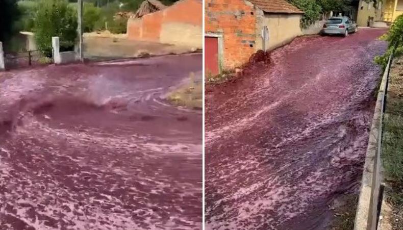 Qyteza e vogël portugeze e São Lourenco do Bairro u ngjye për fat të keq me të kuqe dje pasi më shumë se 2 milionë litra verë u derdhën në rrugët e saj të qeta. Një lum vere të kuqe vërshoi poshtë qytezës kodrinore pranë brigjeve perëndimore portugeze pasi dy depozitat kryesore të distilerisë Levira ishin çarë papritur të dielën. Shkaqet e çarjes së depozitave janë ende nën hetim dhe zyrtarët nuk kanë publikuar të dhënat e hetimeve. Vendasit e shtangur shikonin verën që mjaftonte për të mbushur një pishinë olimpike teksa derdhej në rrugët e qytetit.