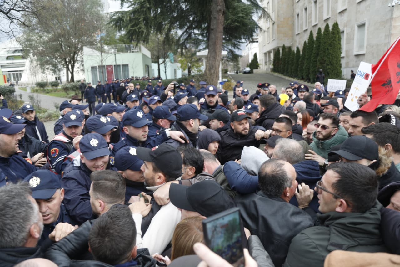 Policia shoqëron protestuesit e “Shqipëria Bëhet”, Lapaj përplaset me efektivët