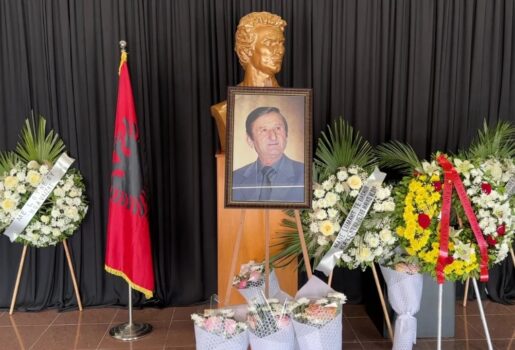 FOTOLAJM/ Xhoana Nano mbeti e vè, pamjet në ceremoninë për Fatosin e ndjerë
