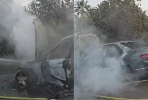 Makina përfshihet nga flakët tek Liqeni Artificial në Tiranë