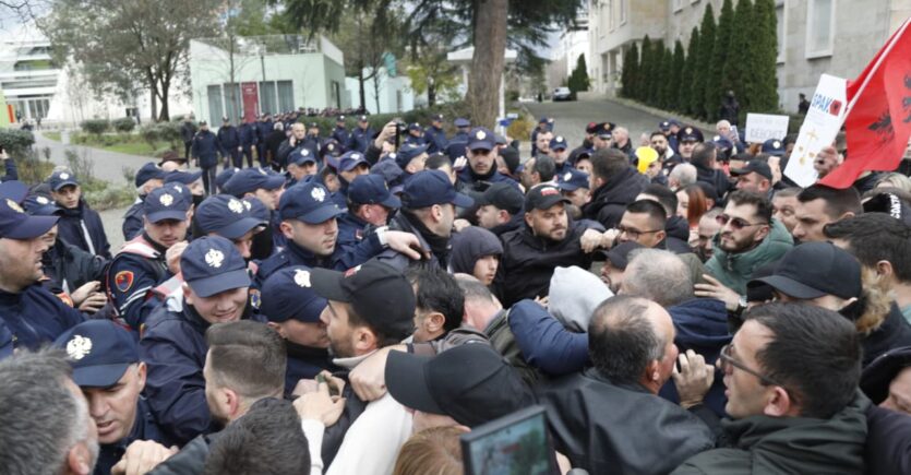 Tensione dhe përplasje janë shënuar pasditen e sotme para Kryeministrisë, gjatë tubimit të organizuar nga Lëvizja “Shqipëria Bëhet”, ku protestuesit u përballën me efektivët e Policisë së Shtetit. Situata u përshkallëzua në momentin kur një pjesë e protestuesve tentuan të...