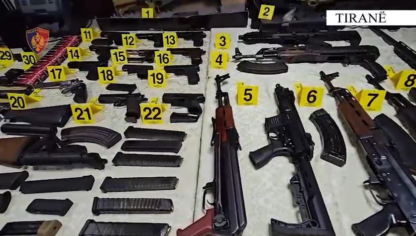 Zbulohet një bazë me 23 armë, municione, silenciatorë, eksploziv, GPS në Tiranë. Në pranga i riu