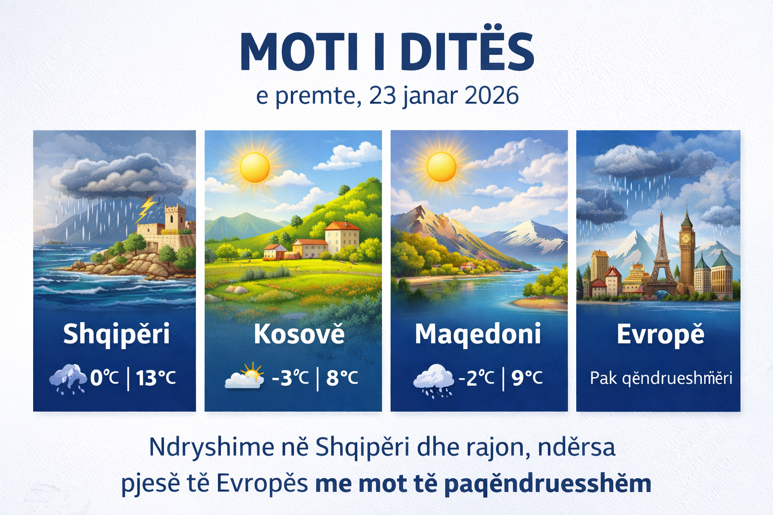 Parashikimi i motit për sot në Shqipëri, Kosovë dhe Maqedoni (e martë 27 janar 2026)