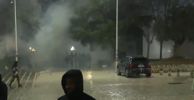 Fishekzjarre dhe molotov para Kryeministrisë, policia përdor gaz lotsjellës