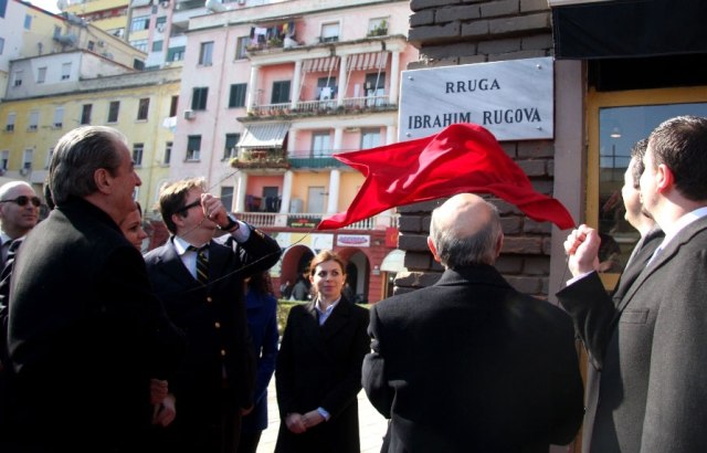 Tiranë, 17 shkurt 2012, NOA/ Arjola Ymeraj- Pikërisht sot kur Kosova festonte ditëlindjen e katërt si shtet i Pavarur, Shqipëria i dhuroi zyrtarisht Ambasadën në Tiranë dhe një rrugë në mes të qytetit e cila do të mbajë emrin e ish-Presidentit Ibrahim Rugova.
