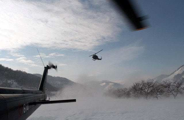 Tropojë, Pukë, Pogradec, 28 shkurt 2012, NOA – Forcat Ajrore të Ministrisë së Mbrojtjes kanë vijuar operacionin e shpërndarjes së ndihmave për banorët e bllokuar nga dëbora prej një muaji tashmë.
