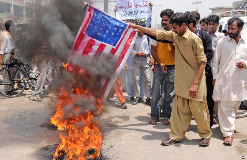 Qindra protestues kanë dalë në rrugë pas lutjes së të premtes duke djegur flamuj amerikanë dhe duke dënuar hapin e Uashingtonit për dhënien e 10 milionë dollarëve si shpërblim për kokën e liderit militant pakistanez.
