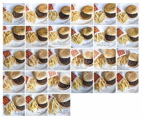 Fotografja njujorkeze Sally Davies festoi dyvjetorin e projektit të saj ‘Happy Meal’. Ky projekt konsiston në fotografimin e një hamburgeri që amerikania e ka blerë në vitin 2010 dhe të cilit i bën foto çdo ditë duke treguar se ushqimi është ruajtur shumë mirë edhe pse ka kaluar shumë kohë.