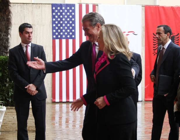 Clinton was in Tirana on the last leg of a tour of the western Balkans. She has visited Bosnia, Serbia, Kosovo, and Croatia.