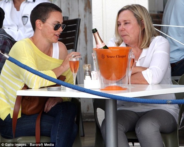 Në këto fotografi, Theron është me flokë të prera shkurt dhe ngjyrë kafe teksa bisedon me nënën e saj Gerda, raporton noa.al.