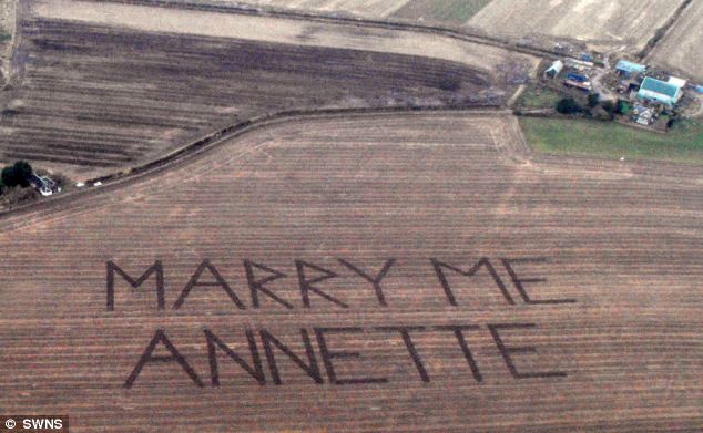 “Marry me Annette”, ose martohu me mua, ishin këto fjalët e shkruara në një fushë për gruan e zemrës dhe kur ajo hodhi sytë drejt tij e emocionuar, Stuart mbante në duar një unazë diamanti për të… dhe ajo tha po menjëherë.