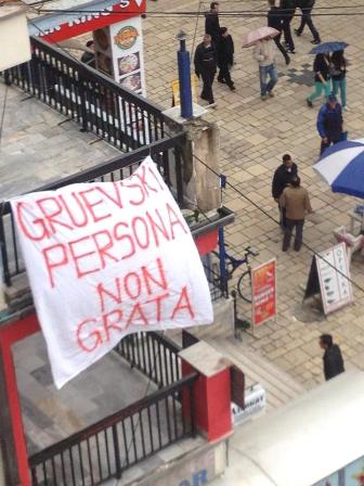 Strugë, 5 prill/NOA/Naser Pajaziti – Kryeministri i Maqedonisë Nikolla Gruevski është shpallur “persona non grata” në Strugë nga ana e aktivistëve të lëvizjes qytetare “Zëri”.