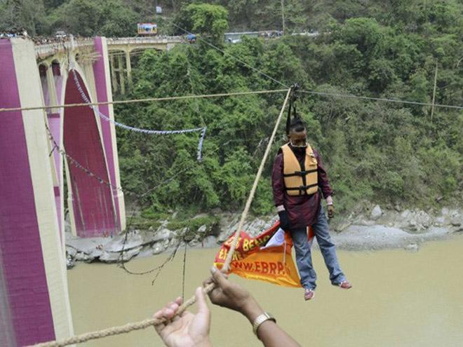 Sailendra dyshohet të ketë pësuar goditje në zemër duke kaluar për 183 metra mbi një lumë i varur nga flokët në një kavo metalike.