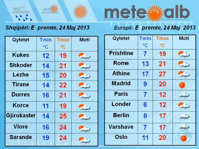 Pjesa e dytë e ditës do të sjellë përmirësim të motit duke larguar gradualisht vranësirat dhe shirat dhe për pasojë kthjellimet do të rikthehen sërish në vend. E njëjta situatë meteorologjike do të vijojë edhe gjatë natës.