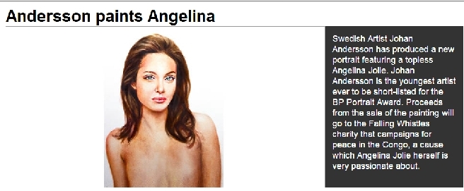 Artisti Johan Andersson e frymëzuar nga gjesti i Jolie për të parandaluar kancerin nga i cili rrezikohej të prekej, e ndërmori këtë nismë duke e pikturuar ashtu siç aktorja duket pas operacionit.