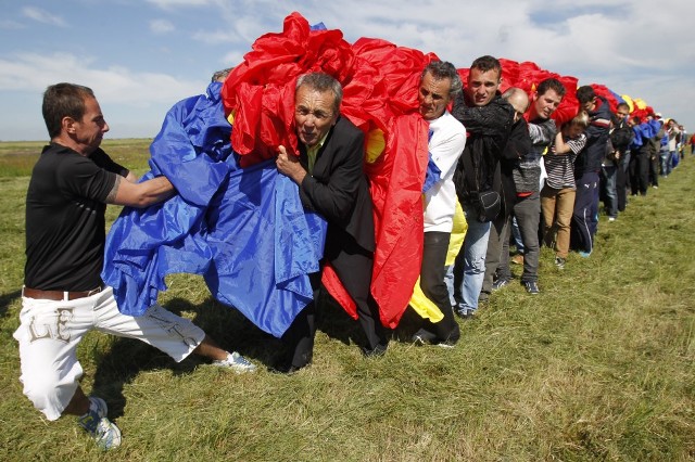 Flamur rekord në Rumani. Në fshatin Clinceni, 35 kilometra nga Bukureshti është hapur një flamur me përmasat 349 metra për 227. Nga Guinness-i vjen konfirmimi se bëhet fjalë për flamurin më të madh që është qepur në botë.