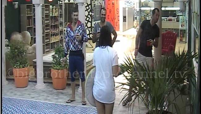 Në shtëpinë më të famshme në shtëpi më vonë Vëllai i Madh vendos të fikë dritat, në shenjë për banorët të cilët duhet të shkojnë të flenë dhe të gjithë shtrihen për të fjetur gjumë, ndërkohë që bëjnë shaka e qeshin me njëri-tjetrin. Por vetëm pas pak minutash, ata çohen sërish dhe shkojnë në dhomën e ndenjes, duke qeshur me njëri-tjetrin. Ata hapin një shishe verë dhe fillojnë të bëjnë shaka në kopsht, ndërsa ngacmojnë Elonën për fundin e shkurtër që ka veshur dhe për faktin që është e vetja femër në shtëpi. “Duhet t’i lutem Zotit që më shpëtojë nga ju”, shprehet Elona, ndërsa u kërkon që të mos vazhdojnë më me ngacmimet e tyre.