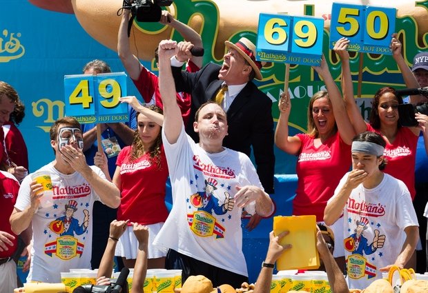 Brooklyn New York, SHBA, 5 Korrik 2013, NOA.al/ Beqir Sina – Në plazhin e Coney Island në Brooklyn, New York, Joey Chesnut i "gëlltiti" në 10 minuta 69 panine me salsiçe. Ai ka fituar kështu për të shtatën herë me radhë konkursin ndërkombëtar për të ngrënë panine me salsiçe, duke mbajtur rekordin e vet për garën e meshkujve. Në këtë konkurs ka qenë Sonya Thomas me 36 panine me salsiçe e cila mbrojti titullin në konkurrencën e femrave.