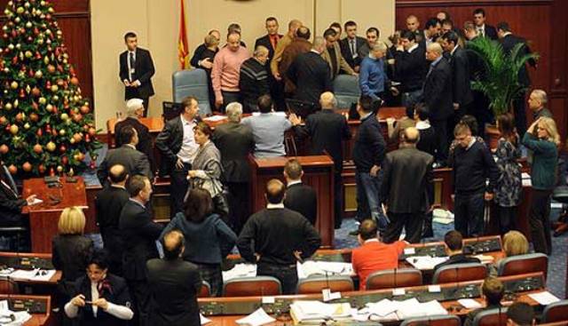 Ngjarja e 24 dhjetorit ka të bëjë me Parlamentin e Maqedonisë, ku u opozita u nxor dhunshëm nga Parlamenti dhe më pas maxhoranca pa asnjë debat miratoi projekt – buxhetin për vitin 2013. Përveç deputetëve të opozitës, jashtë sallës së Parlamentit u nxorën edhe gazetarët, ndërsa në ambientet e jashtme pati protesta të opozitës dhe nga ana tjetër përkrahës të partisë maqedonase në pushtet VMRO-DPMNE.