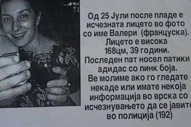 Shkup, 6 shtator 2013, NOA.al- Zhdukja e një shtetase franceze në Maqedoni, Valeri Bara Neziroski vazhdon të jetë një nga top lajmet e mediave vendase. Bashkëshorti i saj ka ofruar shpërblim prej 5 mijë eurove për gjetjen e bashkëshortes së saj franceze e cila u zhduk nga 25 korriku i këtij viti në rajonin e Kërçovës.