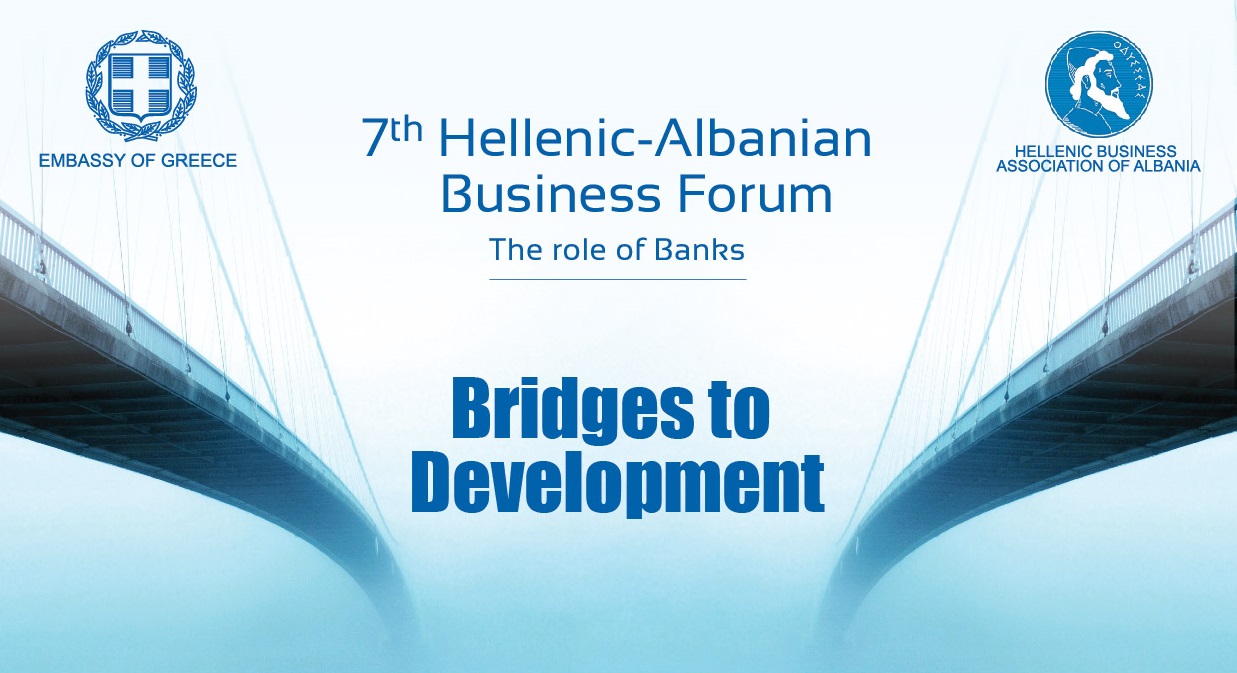 Zyra për Çështjet Ekonomike dhe Tregtare e Ambasadës Greke në Tiranë në bashkëpunim me Shoqatën e Biznesit Greke në Shqipëri (HBAA), do të organizojnë Forumin e 7-të Greko-Shqiptar të Biznesit me titull "The role of banks – Bridges to Development", i cili do të zhvillohet të mërkurë 13 nëntor në Hotel “Sheraton” në Tiranë.