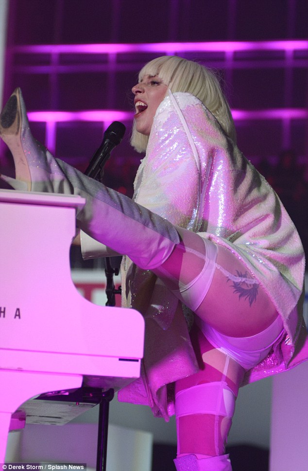 "‘Mbretëresha e popit", Lady Gaga përuroi dje në Nju Jork albumin e saj "Artpop" para një turme fansash të saj të përzgjedhur duke lënë nam me veshjen e saj, krejt provokative, me këmbët që mbante përpjetë sikundër shihni në foto dhe me poza e ngërdhjeshje nga më të cuditshmet.