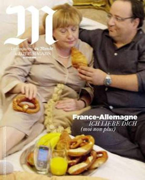 “Le Monde” ka vendosur në faqen e parë të kopertinës, sozinë e presidentit francez Hollande dhe të Kancelares Gjermane Angela Merkel, bashkë në një shtrat.