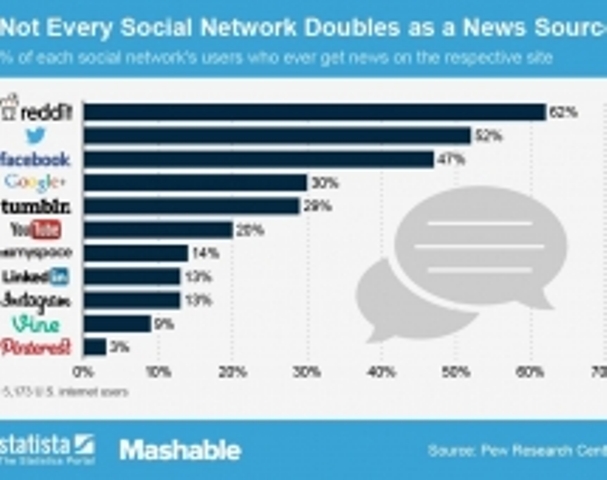 Sipas statistikave, rrjeti më i popullarizuar shoqëror për marrjen e lajme është Reddit, ku 62% e përdoruesve thonë se ata marrin lajmet nga ky rrjet. Burim më pak popullor është Pinterest, ku vetëm 3% e përdoruesve thonë se ata marrin lajmet aty. Grafiku i Statista më poshtë tregon përqindjen e përdoruesve të 11 rrjeteve kryesore sociale të cilët raportojnë marrjen e lajme nga platformat përkatëse./a.s/noa.al/