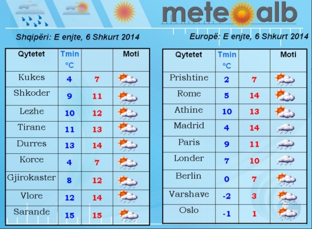 Për sa i përket pjesës tjetër të kontinentit do të jetë nën ndikimin e kthjellimeve dhe vranësirave të herë pas hershme./a.y/noa.al/