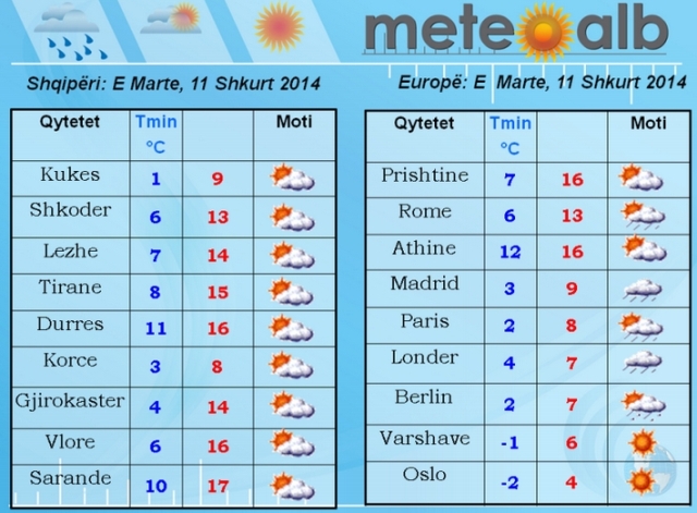 Me mot të kthjellët do të karakterizohen, vendet Nordike, rajoni i balltikut, gadishulli i Ballkanit si edhe vendet e lindjes./a.y/noa.al/