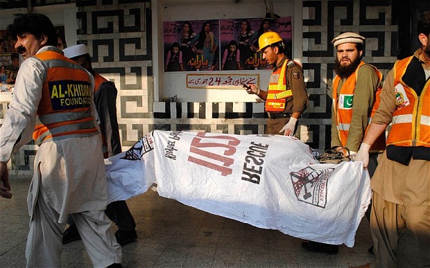 Telegraph anglez tha se ngjarja që ndodhi në një kinema në Peshavar, në veri-perëndim të Pakistanit ka shkaktuar edhe plagosjen e 25 personave të tjerë. Sipas mediave nderkombetare, kjo kinema shfaqte edhe filma me përmbajtje për të rritur.