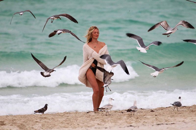 Shërbimi fotografik u realizua në plazhin e Santa Monica në Miami, ku Candice ka treguar linjat e saj në poza tejet provokuese, ku pas trikos pozoi edhe me pallto dhe pantallona të shkurtra dhe kanotiere.