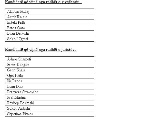 Procesi përzgjedhës do të vijojë me bashkëpunimin midis Presidentit të Republikës dhe kryetarëve të grupeve parlamentare të Kuvendit të Shqipërisë, me qëllim përcaktimin e kritereve konkrete, bazuar në listën e kandidatëve, në përputhje me kërkesën kushtetuese për kualifikim të lartë të anëtarit, duke siguruar kështu përbërjen cilësore dhe të nevojshme për Gjykatën e Lartë. Bashkëngjitur gjeni edhe listën e konkurruesve që plotësojnë kushtet ligjore si kandidatë për anëtarë të Gjykatës së Lartë./a.y/noa.al/