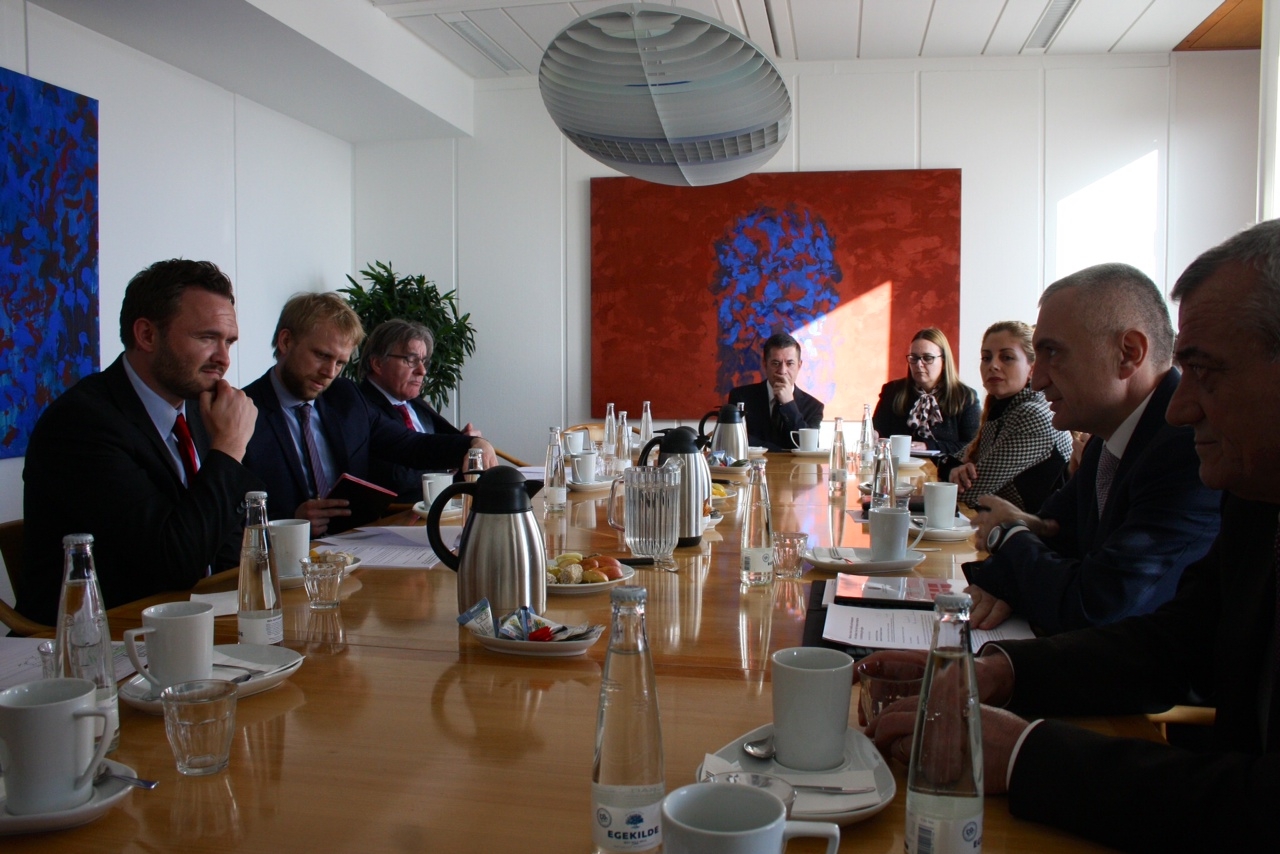 Danimarkë, 1 prill 2014, NOA.al- Kryetari i Kuvendit Ilir Meta i shoqëruar nga delegacioni parlamentar shqiptar u prit nga Ministri danez i Ushqimit, Bujqësisë dhe Peshkimit z. Dan Jorgensen.