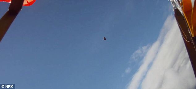 Një parashutist norvegjez, i cili sapo është hedhur nga avioni për një fluturim akrobatik, është rrezikuar të goditet nga një meteor që i ka kaluar shumë pranë.