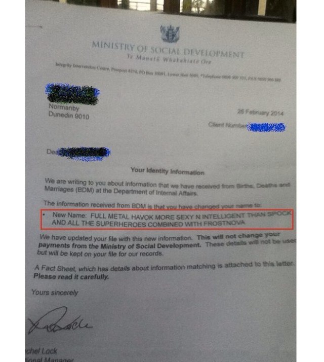 Tashmë “Full Metal Havok More Sexy N Intelligent Than Spock And All The Superheroes Combined With Frostnova”, është i detyruar që të ndryshojë edhe patentën dhe kartën e identitetit, për të vendosur emrin e tij./a.y/noa.al/