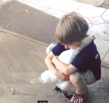 Shikojeni në këtë video sesi zgjatet pula për të përqafur djalin vogël dhe sesi rri në krahët e tij duke shijuar përqafimin e ngrohtë të tij.