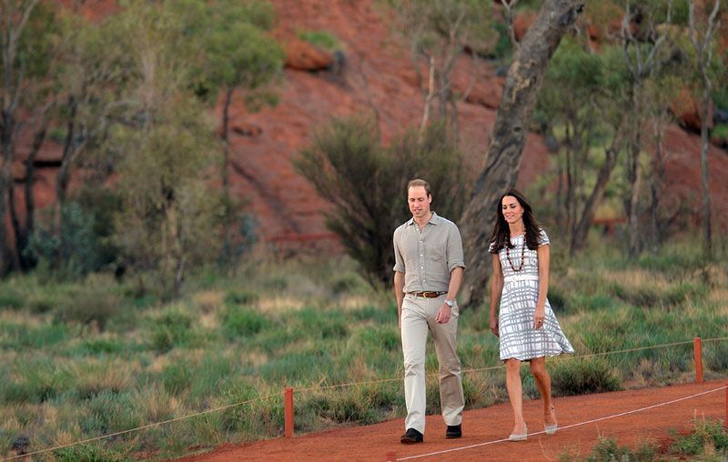 Dukesha e Cambridge Kate Middleton dhe bashkëshorti i saj princi William, janë fotografuar përballë malit Uluru, në masivin shkëmbor të Australisë.