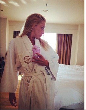 Ajo ka postuar në Instagram një foto të saj në një dhomë hoteli, ku nëpërmjet saj ju uron të gjithëve një ditë të lumtur.