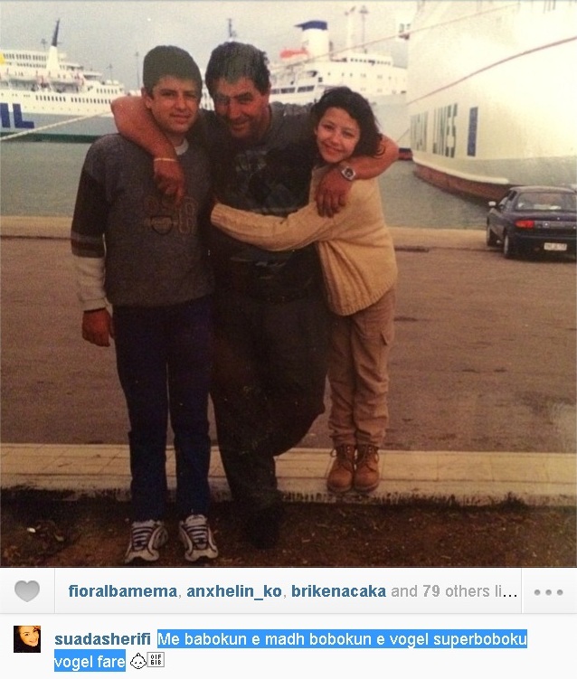 Bukuroshja vlonjate e cila është përfshirë edhe në botën e televizionit ka publikuar fotografi edhe me të atin ku shkruan, “Me babokun e madh, bobokun e vogël superboboku vogël fare”./a.y/noa.al/