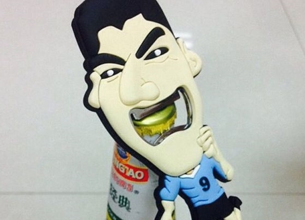 Në eBay, faqen më të njohur për shit/blerjet online, hapësja e birrave alla Luis Suarez gjendet për rreth 6 Paund.
