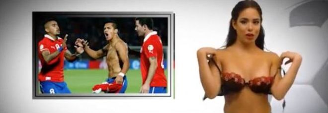 Në këtë video gazetarja shfaqet e veshur me të brendshme, duke informuar për lidhur me ndeshjen Brazil-Kili (3-2). Pas kësaj ajo heq reçipetat dhe vijon të japë lajmet gjysmë e zhveshur./a.y/noa.al