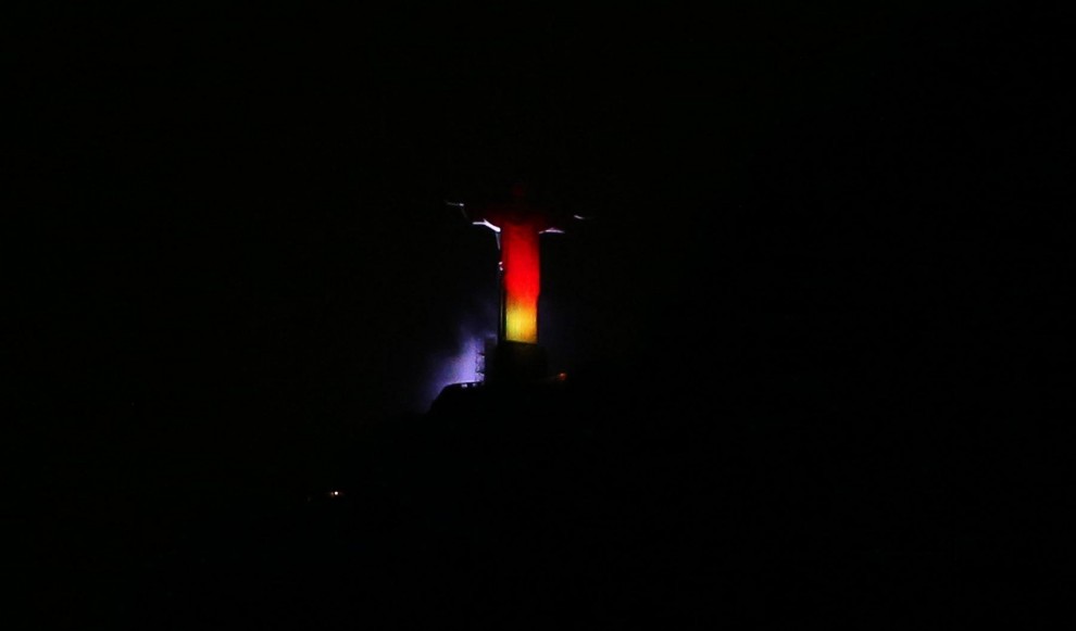 Në prag të finales statuja e Krishtit u ndriçua me ngjyrat e kombëtareve që luanin, Gjermanisë dhe Argjentinës./a.y/noa.al/