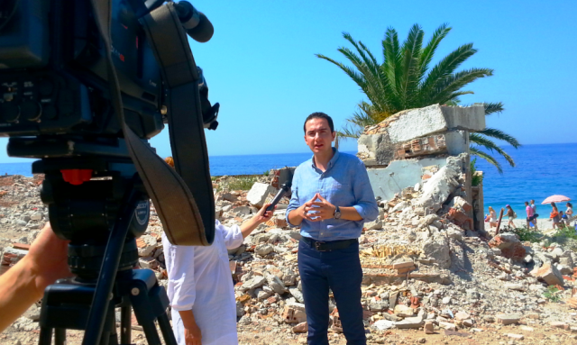 “Jemi në pikun e sezonit turistik dhe realiteti në një nga plazhet më të bukura të jugut, siç është plazhi i Dhërmiut, është ky që shohim pas. Ky realitet, kjo shëmti urbane, ky grumbull inertesh, ka ardhur si pasojë e ndërhyrjes së qeverisë. Ka ardhur si pasojë e papërgjegjshmërisë dhe arrogancës së qeverisë. Qeveria e ka detyrim ligjor pastrimin dhe rehabilitimin e zonës pas çdo ndërhyrje. Por me ç’duket punët e qeverisë shkojnë mirë vetëm në ekrane dhe në facebook-un e kryeministrit. Ndërkohë që në realitet punët në Shqipëri janë si ky grumbull mbeturinash që ndodhet këtu pas meje”, tha Salianji.