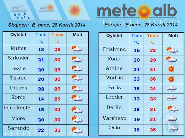 Kthjellime dhe temperatura te larta do të karakterizojnë kushtet e motit në Europën Jugperëndimore dhe vendet e Lindjes. /a.s/noa.al