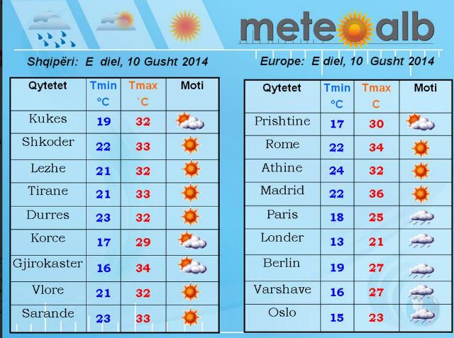 Temperaturat e ajrit nuk do të kenë shumë ndryshim në vlerat e mëngjesit, por mesdita do të sjellë rritje të tyre në të gjithë vendin.