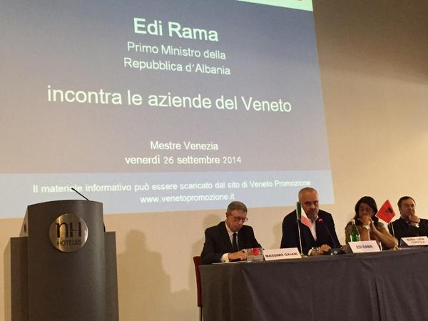 Veneto, 26 shtator 2014, NOA.al- Kryeministri Edi Rama i cili ndodhet në Veneto të Italisë, ka informuar lidhur me përmbajtjen e takimit.