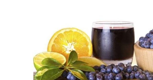 Në një litër me lëng boronice 100% (në pamundësi të lëngut të freskët të boronicës, përgatisni çaj boronice. Në një litër ujë të valuar shtoni 10 bustina çaji me boronicë) shtrydhni 4 kokrra limoni dhe 4 kokrra portokalle. I shtoni një lugë kafe me kanellë të bluar (ose 2 shkopinj kanelle) dhe një lugë kafe me xhinxher të bluar (në mungesë të xhinxherit të bluar, shtoni një filxhan kafe me xhinxher të pa bluar).