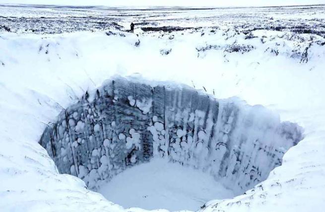 Një grup shkencëtarësh zbritën në brendësi të një krateri misterioz në Siberi i cili është i thellë 16.5 metra dhe i gjerë 30 metra. Duke përdorur pajisje specifike, studiuesit u ndalën në rreth 10 metra thellësi, sepse gropa ishte e mbushur me ujë të ngrirë.
